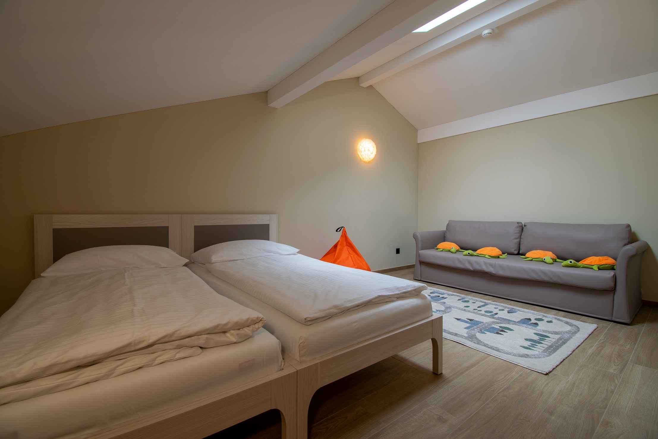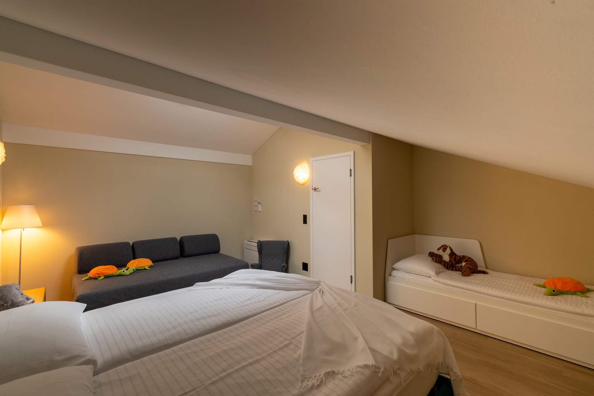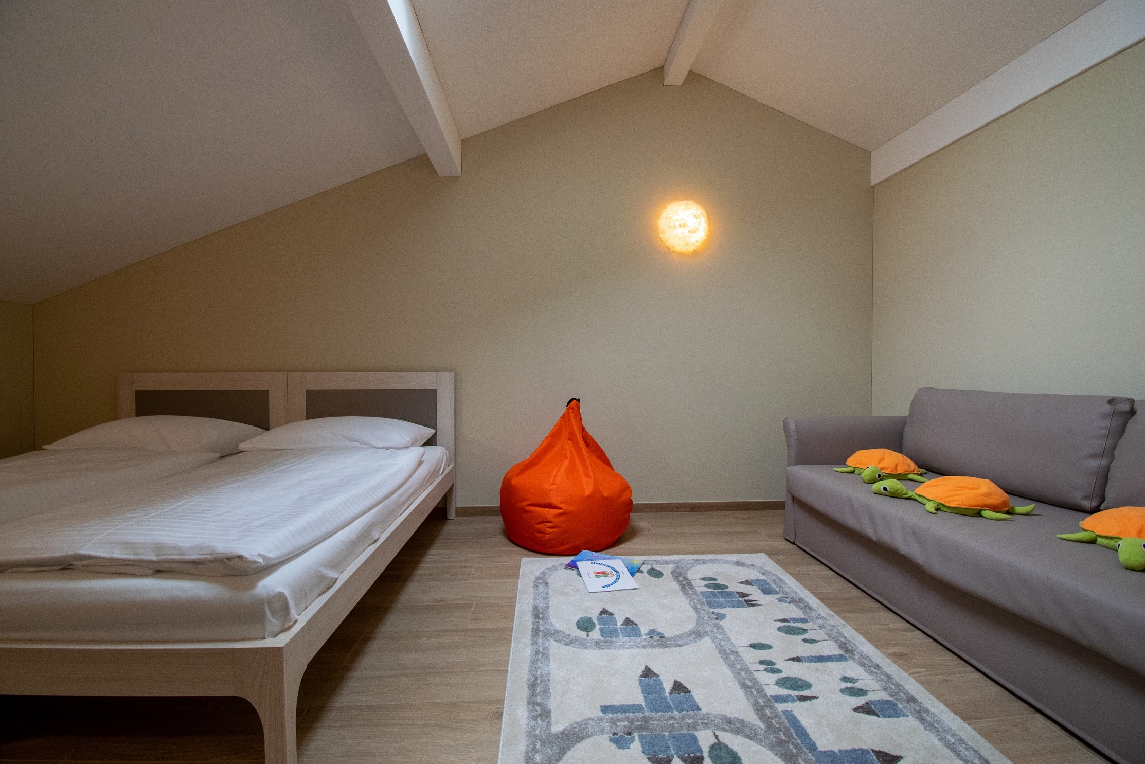 Le nostre nuove camere familiari "Tritone" dispongono di una camera matrimoniale e und camera per i bambini.