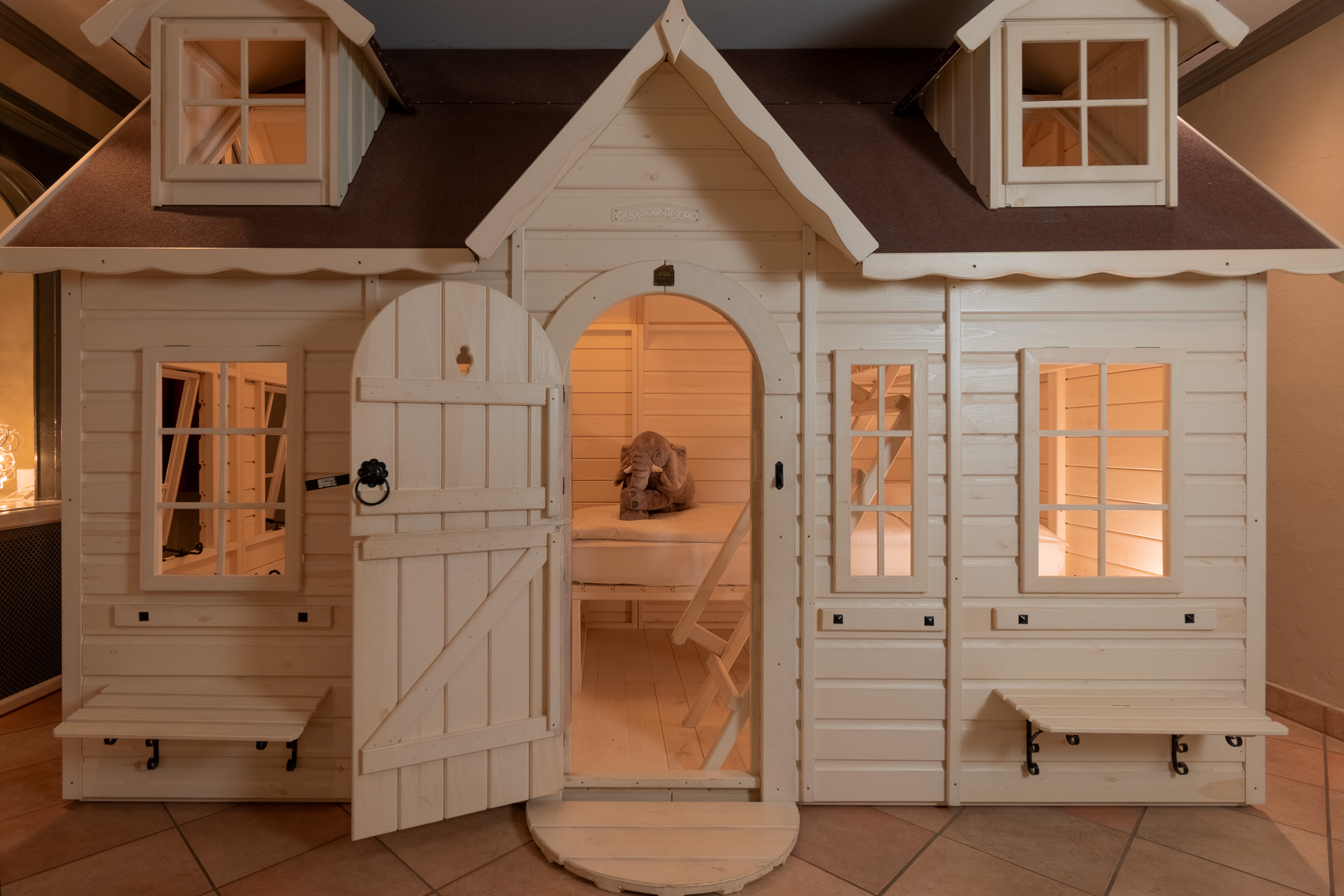 Questa camera è ideale per le famiglie (54 m2) e dispone di una casetta con letti per bambini.